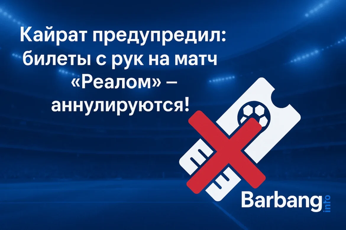 Алматы. 23 сентября. Barbang Info – Футбольный клуб «Кайрат» обратился к болельщикам с важным предупреждением перед началом продажи билетов на матч Лиги чемпионов с мадридским «Реалом». Клуб заявил, что билеты, купленные у перекупщиков или через неофициальные каналы, будут аннулированы, и те, кто их приобрёл таким образом, не смогут попасть на …
